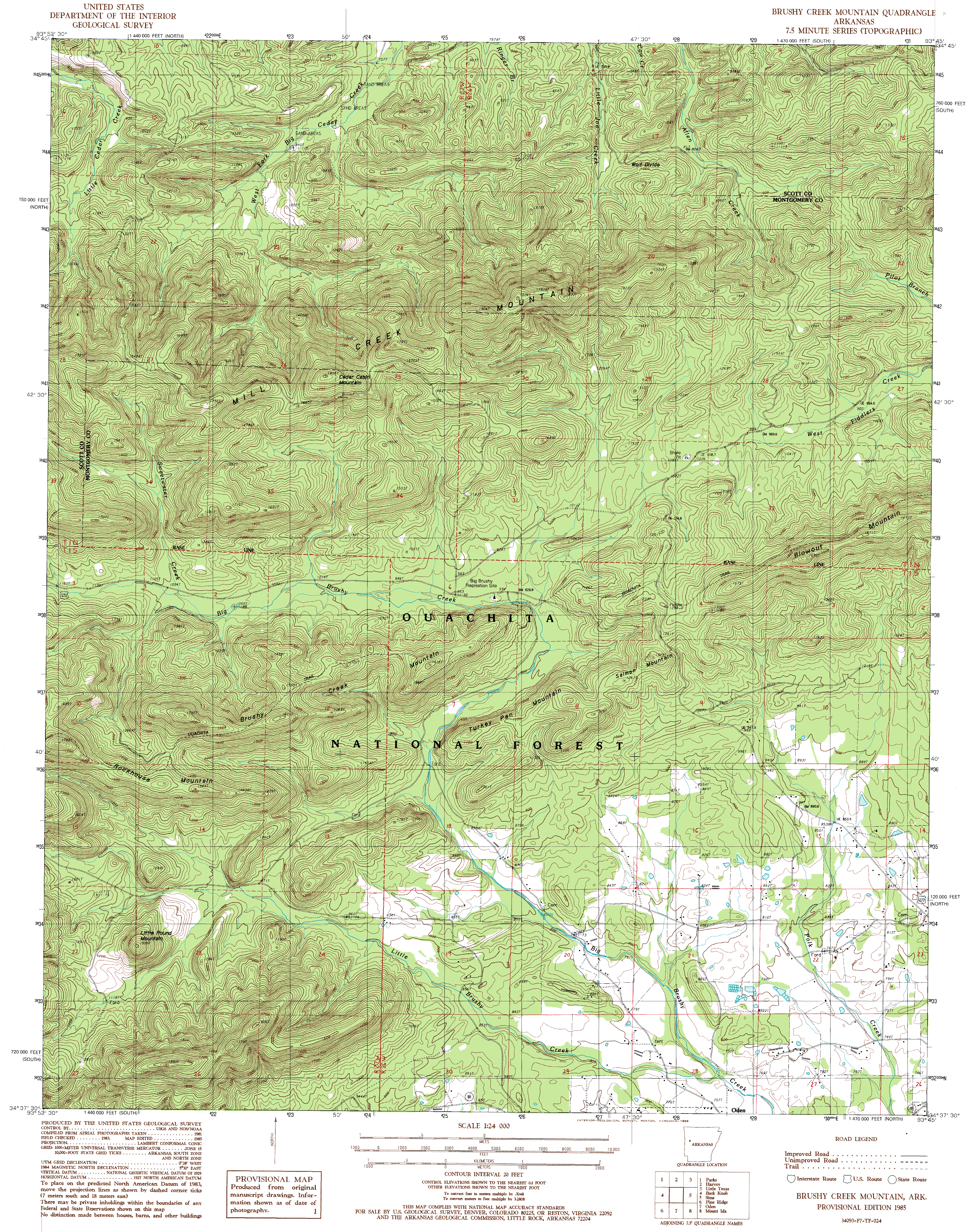 November 21, 2010 We met my old high school pal, Mendez, at a green-sided, pink-walled rastafarian-themed rental cabin near Mt Ida. Mandy, his wife, was unable to attend, though she had been the chief lobbying party for this particular cabin some days previously. The location was largely dictated by its equal distance to our respective residences in Tennessee and Texas, and with Ada only 9 months old and not keen on 13-hour car rides, an essential stopover point for us on our way down for a Thanksgiving visit. In between nights spent at the cabin, we ventured out on a drizzly Saturday with our dogs, Makenzie and Henry, to the Brushy Creek Trail. Though overcast, it was not cold. Any temperature below 60 might’ve precluded us from taking such a hike with Ada, but we were lucky to hit a late November warm spell of upper 60’s. We donned orange, all of us, dogs too, and were off by 10:00. From the parking lot, we followed the dirt road south across Big Brushy Creek and then turned west onto the trail, which immediately led up stairs and into the woods. We followed the route to the southwest over rocky terrain, made slippery by the morning drizzle and layers of slick, wet leaves. Ada maintained a running conversation with herself, while the rest of us talked of other, less interesting things. Before long the exercise made me hot, and I stopped to remove my outer shirt and pant legs. Shortly after, we reached a fork in the trail, and decided to head to the left to complete a loop back to the car. Turning right also would have started us on a loop trail back to the car, but a longer one. Since the trail did not go over the small summit at 1425’, we cut due north from the trail to reach it. The summit consisted of a pile of rocks surrounded by trees. We sat and snacked, enjoyed the view to be had through the naked trees, and enjoyed the company of a brown walking stick. As the summit is covered in poison ivy, this hike is only likely to be enjoyable during the fall and winter. We continued down the trail, losing elevation as we neared the trailhead. The latter portion of the trail, as it sidled alongside the Big Brushy Creek valley, had several rocky outcroppings where the lack of tree cover allowed an unobstructed take on the surrounding country. As most of the leaves were off the trees already, there was not much color to the hills outside of the green pines. We reached the road, and