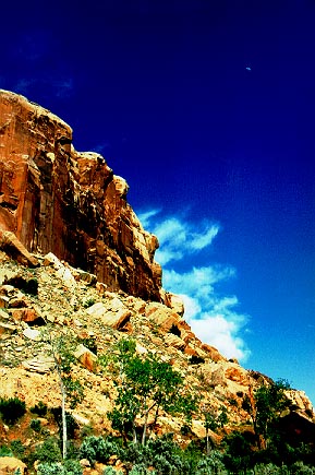 the base of the butte and then slamming back up against the cliff after