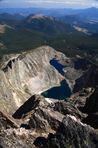 September 17, 2009 It’s the waning days of summer and the forecast bodes well enough for Griff and I to try to pick up a nice hike to the three summits of Chapin, Chiquita and Ypsilon, the southernmost peaks in the Mummy Range. These form the extremely scenic backdrop to Horseshoe Park, which is the first large meadow one comes to when entering Rocky Mountain National Park from the Fall River entrance, especially in the winter when they are coated from base to summit in gleaming white snow. I pick Griff up from his house before dawn, vaguely wishing I was back in bed, and we drive south under a brilliant, clear sky to Estes Park, and into Rocky Mountain National Park by way of his annual pass. The gate attendant livens the mood by showing us a giant orb weaver spider she caught in her booth and is keeping in a large yogurt tub. The sun is shining clearly through a crystalline blue fall sky as we drive on up Fall River Road towards the Chapin Pass trailhead. It’s late September and the aspen leaves are beginning to change. Most are still green, but there are definitely some very yellow ones hiding in there. Rounding a corner, a large bull elk appears in the middle of the road, and scoots over only enough to get around the car on his way down the road. It’s fall, and the bull elk are congregating in the meadows below for the fall rut, bugling and sparring. We reach the trailhead and park along the dirt road. It’s chilly, about 40 degrees, and a slight east breeze blows in through the trees. In the shade, it feels pretty cold. I throw on my boots and pack, and we hit the trail around 8:30. The first short portion of the trail heads uphill at a steep pitch through thick evergreen forest of spruce and fir. We take a right turn at the first trail junction, and in a few shakes we’re out in the open above treeline. It’s warmer in the sun, so we stop to remove layers before continuing on the trail heading north. The trail skirts along the western base of Mt Chapin, all above tree line, though its rounded top prevents us from seeing the summit. We know it’s up there somewhere, and soon we’re looking for signs of a trail up to the top. The map I have doesn’t even show the trail we’re on, much less the one we’re looking for. No trail appears, but the map clearly shows that if we head all the way north to Chapin Pass, we’ll be well past Chapin’s summit. So, about ½-mile south from Chapin Pass, we start heading uphill to the east towards Chapin’s summit. The going is slow over steep, rocky terrain, but it’s not too far up and by 9:45, we’re up top. The gentle slope on the western side of the mountain is altogether different from the glacially-carved cliffs that drop away on the eastern face. Jagged pinnacles of granite dot the fractured mountainside as we look down to the forest below, a tiny ribbon of dirt road winding through it. The wind is stiffer on the summit now that we have no mountain to block the east wind, and we don jackets as we sit near the summit shelter ring. Nobody else is around, but we can see tiny figures down below near the pass, heading this way. We time our departure to take place prior to anyone else arriving. There is a worn trail that runs down the northwest face of Mt Chapin to Chapin Pass through the short tundra grasses and cushion forbs. Long strips of the tundra are broken to reveal rough rocks and boulders, as if the mountain were gashed and the rocks bled out from the wounds. A large lenticular cloud has formed overhead, blotting out the sun. The alpine tundra seems such a friendly place when the sun is shining, and such a gloomy, foreboding place when it’s not. We pass by a family of 4 on their way up to the summit, and reach Chapin Pass ourselves at ten after 10:00. We hold a brief conference at this trail junction, where the option to return to the car exists, alongside the option of continuing on to Mt Chiquita. Griff is for heading up Chiquita, and I am too. We head on north, up the southwest face of Mt Chiquita, a block of granite that sits xyz feet higher than Mt Chapin. The trail is clearly marked to begin with, as it runs straight up the hillside through grassy tundra. Closer to the top, however, all is rock, and the path is indicated by small cairns, though any route one cares to pioneer will lead up to the summit just as easily. We take it slowly on this steep section, and before we summit, the sun returns. Near 12:00, we make it to the broad summit, and examine the view from several vantage points before settling into the rock storm shelter ring on the southeastern edge of the summit for lunch. The sun is warm, and with the lack of wind, it is very comfortable to just sit and relax in the shelter ring. In fact, we pass over half an hour here with leisurely lunches and scenic horizon inspections. It’s 1:00 and we’re on our way to Mt Ypsilon. I’ve gotten a headache, which is pretty common at high altitudes, like 12,000 ft. I’ve tried to tank up on water, but it seems like once a headache sets in, it’s there until I get down to 6,000’ and take a nap. The col between Ypsilon and Chiquita is not nearly so demanding as between Chapin and Chiquita, so it’s not long before we pass over the col and begin heading uphill on the rocky slopes of Ypsilon, which is taller than both Chapin and Chiquita. Griff complains of a headache, too, and stops to down some Advil. My head is pounding, but my legs feel great, so I am in favor of continuing on up. Along the ridgeline, the spectacular scenery down below at Spectacle Lakes is amazing, and we slow our pace to soak it in. Large snowfields, left over from last year, still cling to the east-facing slopes. After hiking up and over several false-summits, we reach the high point around 2:20, and sit on the rock monument near the summit to enjoy the view and eat snacks. The sun is still out, as well as the wind…just part of hiking this time of year. From the summit, Mt Fairchild i