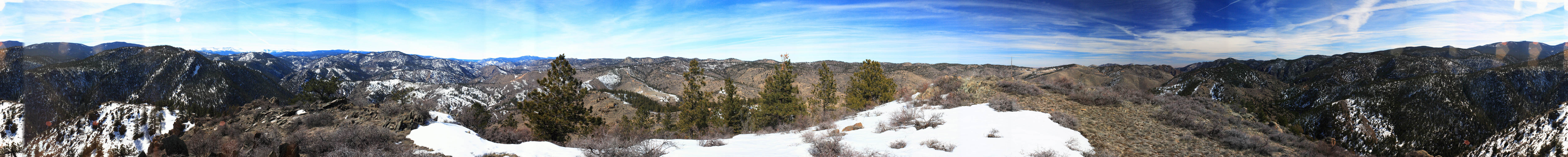 Panorama of the lower Poudre Canyon taken in spring 2002 from just East of Kelly Flats, just north of Mt McConnell.