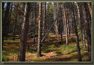 October 16, 2011 It’s a nice October morning, strangely warm. What to do with such a day? Spend it on the couch reading a good book? Watching a great movie on DVD? Treadmilling at the gym? Of course not. The only sensible thing to be doing on what has to be one of the final warm days of 2011 is to be out in the forest, stepping out in long strides, crunching fallen aspen leaves definitively on the dry trail under Vibram soled boots, enjoying the flickering sunlight through the naked tree trunks in the woods, fueled by a sun that has sunk far too low on the southern horizon to mistake the season for anything but fall. The crisp air is invigorating. The silence is captivating. There’s no where I’d rather be on a Sunday than where I am now, in the Medicine Bow National Forest of southeast Wyoming, checking out a trail network I’ve never seen before. Makenzie and Henry are with me. Poor Henry gets so excited he literally quivers as I let him out of the car. I knot an orange bandana around their necks before they race down the trail from the parking area, slobbering and frothing like the mad hounds of hell. I slide a day-glo orange vest over my backpack and sport a cool orange ball cap myself. We’re off. The trail is typical of the area, as it runs through a forest dominated by lodgepole pine that are mostly dead, compliments of our friends, the bark beetles. Aspen trees make frequent appearances, although by this time of year, most of the brilliant yellow leaves of September are gone. Henry and Makenzie trot along at the limit of my observation. On a busy trail, such distances would make me nervous, but as my car was the only one in the lot, I’m fairly confident I won’t see many folks. I do encounter a couple walking not far from the TH, but as they also have dogs on the loose, nobody is worried. It seems odd to be walking at 8300’ in mid-October without even a hint of snow on the ground. The sun angle is very low, and the weak light it sends down through a high cirrus cloud layer is white and pale. The air has the unmistakable feel of fall. Maybe it’s the smell of old aspen leaves on the trail, or something the pines put out, but the air even seems to smell like fall. I think of apple pie, warm cider, egg nog and hot coffee. We tromp on, following the Corner Mt Loop to its intersection with the Camp Loop. With my GPS on, I take every right turn in the trail that I come to, backtracking each time I reach a road or a campground. Most campgrounds are empty. I only see a couple of campers parked in the area, though the forest is thick and can easily give cover to many campers. Most of the woods near the campgrounds is filled with dead pines that have blue slashes painted on them, meaning they will shortly be cut for timber. There are disappointingly few pines that have no marks. Near one of the campground spur trails we come upon a shallow pond and the dogs jump right in. The pond is not quite right. It has no outlet, but sits in a depression in the shaded forest. One would think it had always been there, yet large dead pine trees stand in the water, along with green aspen. It’s apparently wet enough to kill all the pines, or did they all die because of bark beetles? And, it’s not wet enough to kill the aspen, even though they are currently in a foot of water at the end of the dry season. Most things in the forest quickly make sense, and you can read the story from the evidence at hand. For this little pond, I can make out no such simple story. It just doesn’t make sense to me. Through taking every right turn and finding out where it goes, I finally arrive back at the trailhead, and a final reckoning of the trail network. It’s not as large as I had always imagined. It’s pleasant, but not thrilling. It’s the kind of trail you stroll on without a purpose, as opposed to trying to summit a mountain. |