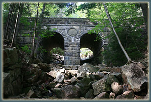 Maps: Trails Illustrated 1:50K Acadia National Park Access: Park at the Bubbles Parking Area north of Jordan Pond Fees: Free in winter; 7-day pass is $10 in spring & fall, $20 in summer (see NPS website for info) Weather: Current and recent weather conditions Local Forecast August 18, 2006 Mom and I left our tent in the Blackwoods camp before daybreak and drove over to watch the sunrise at Otter Point. Milky clouds muted the sunshine, but it was pleasant nevertheless. We ate a breakfast of granola bars sitting on the wall near the road, overlooking the Atlantic Ocean. As the sun rose higher, we drove over to the Bubbles parking lot and began hiking under cloudy skies at around 9:00. We climbed to the top of South Bubble, then downhill (a little tricky) to the shore of Jordan Pond. There are tons of trails leading every which way on Mt Desert Island, but with a nice map, it’s no problem to navigate. Plus, all junctions are well-signed. The sun came out from the fog, and every color in the woods gained vibrancy. We passed by one of many handsome old bridges in the park constructed of stones, if the number on the center column is reliable, in 1925. We navigated the network of trails west and uphill through thick forest to what can only be described as timberline (weird seeing timberline at less than 1000 ft). The day was warm and breezy, and we made it over to Sargent Mt, which is the second-highest peak on the island.. Cadillac Mt is about 200’ taller, but there is also a road leading right to the top of Cadillac Mt, making it much less interesting to my way of thinking. The summit of Sargent Mt was open granite with a few flowers and patches of scraggly shrubs. We could see far out to see over rippling blue water, as well as down to a few of the small towns that are intermixed with parkland. Acadia is a unique park in that respect. One minute your driving through national park, and the next, you’re passing through a fishing village. The next, you’re back in the park. It’s a patchwork of public and private land, with lots of trails connecting everything in a European-style way. From Sargent Mt we headed south to Penobscot Mt, where dozens of people were hanging out (unlike Sargent Mt where we had been the only ones in sight). From there we followed the trail down a steep cliff, then over to Jordan Pond House, where tons of people were eating and hanging out. Cars lined the road for a couple of miles in either direction. We got onto the flat path that circles Jordan Pond and headed north through a lush mixture of white pine and paper birch, taking a turn to the east to head back up to the parking area. The last section of trail lead through a fabulous forest made up entirely of paper birch. We arrived back at the car around 2:00. |